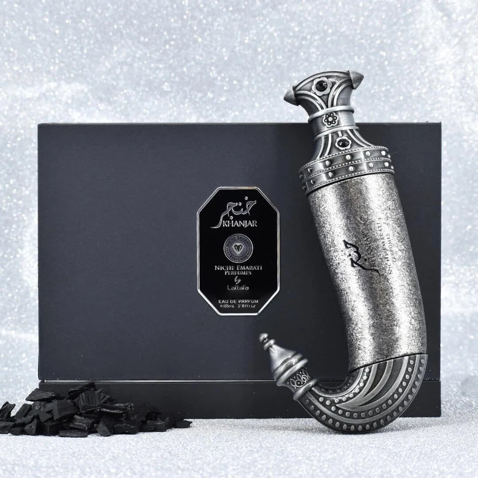 Lattafa Niche Khanjar is a luxury Arabian niche fragrance with a bold blend of spicy and citrus top notes, a heart of florals and rich woods, and a deep base of oud, amber, musk, and vanilla. This long-lasting oriental perfume is powerful, sophisticated, and perfect for evening wear or special occasions.