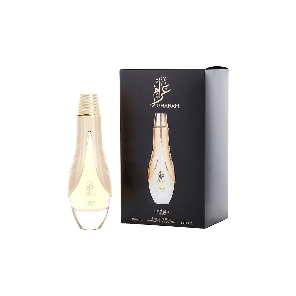 Lattafa Pride Gharam is a luxurious Arabian fragrance that opens with sweet fruity and citrus notes, followed by a heart of romantic florals and soft spices. The base lingers with amber, musk, vanilla, and oud, giving it warmth, depth, and long-lasting elegance. This oriental perfume is perfect for lovers of rich, sensual, and sophisticated scents.