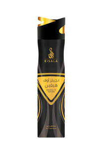 Risala Angels of Heaven Air Freshener opens with warm spicy top notes of cinnamon, nutmeg, and bergamot, flows into a sweet heart of dates, praline, and tuberose, and settles into a creamy-sweet base of vanilla, tonka bean, benzoin, amberwood, and myrrh. This long-lasting gourmand-oriental scent instantly adds cozy indulgence to any room or car.